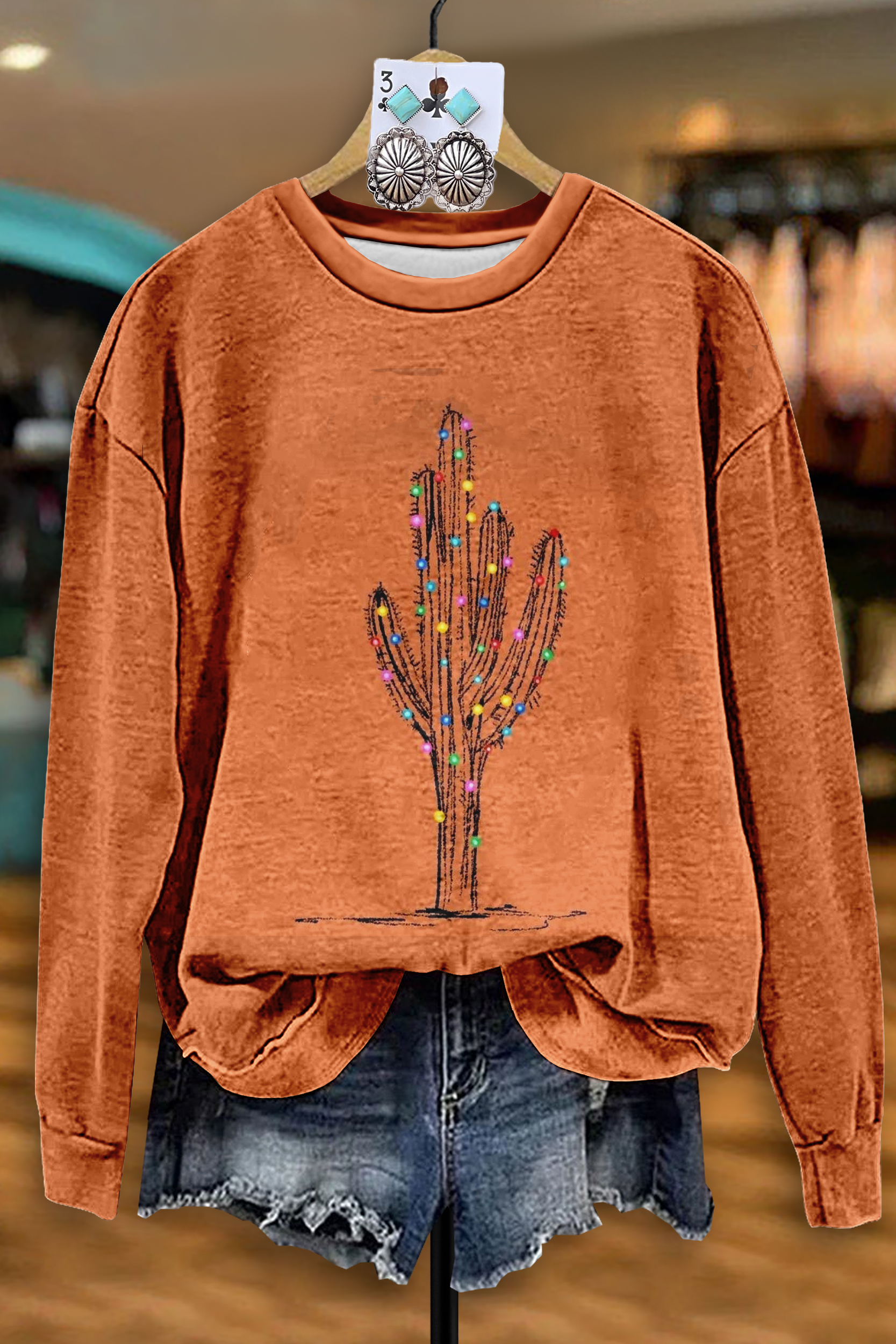 Shiny Western Cactus Light Ball Sweatshirt