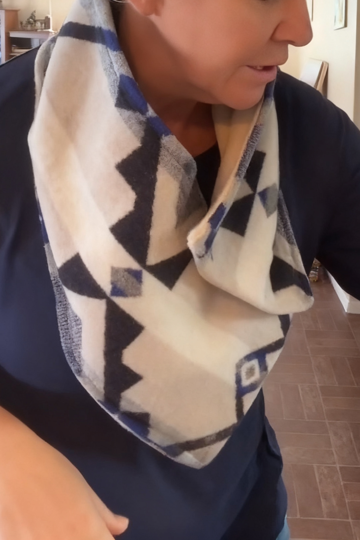 Western Blue Gray Aztec Sherpa Warm Neck Hood
