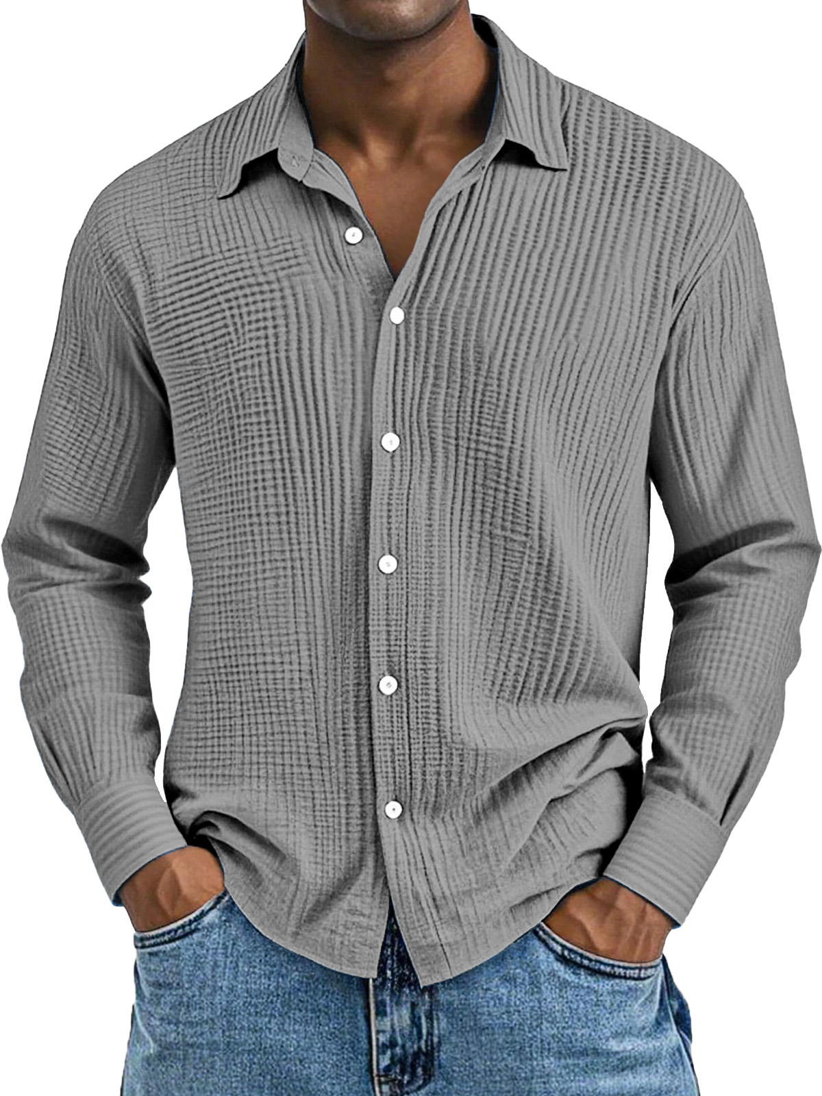 Men's Daily Casual Solid Color Pure Cotton Pleated Texture Long-sleeved Shirt