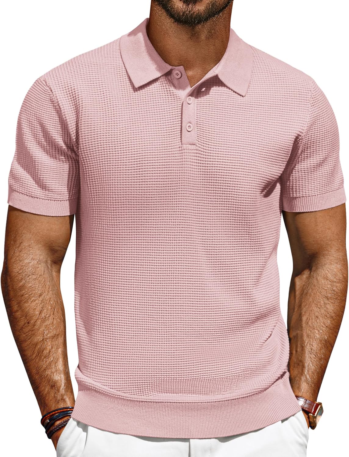 Knit Polo Shirts for Men Casual Short Sleeve Waffle Texture Polo Golf Shirt