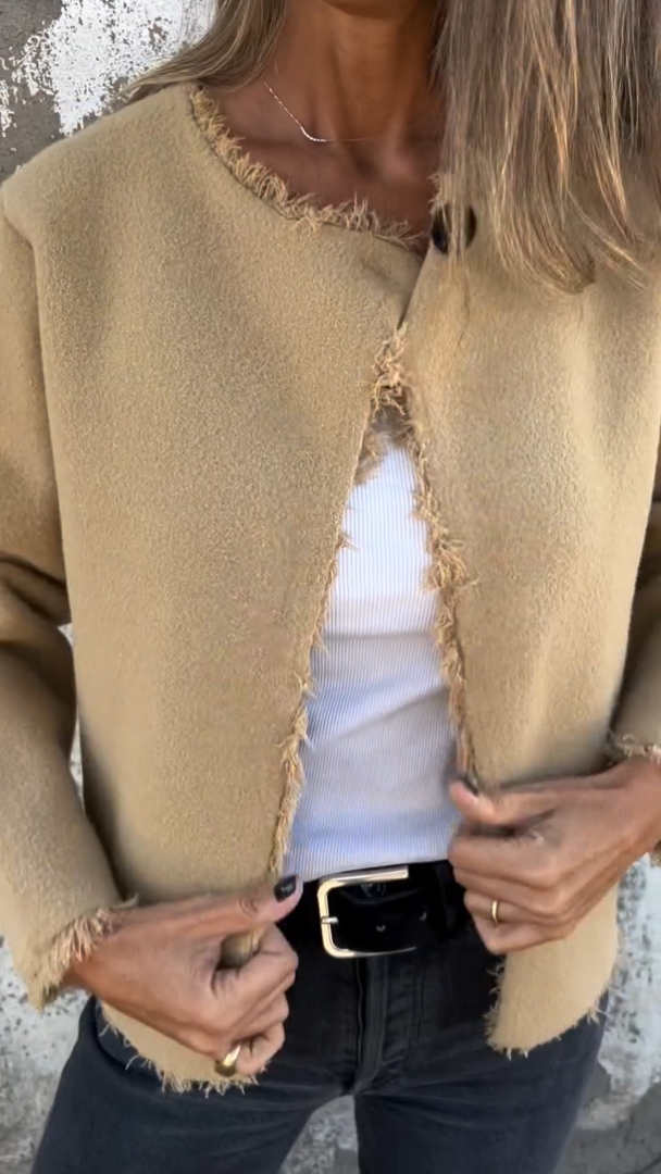 NEW IN- 50% OFF🔥Women's Cotton Woolen Round Neck Woolen Long Sleeve Coat