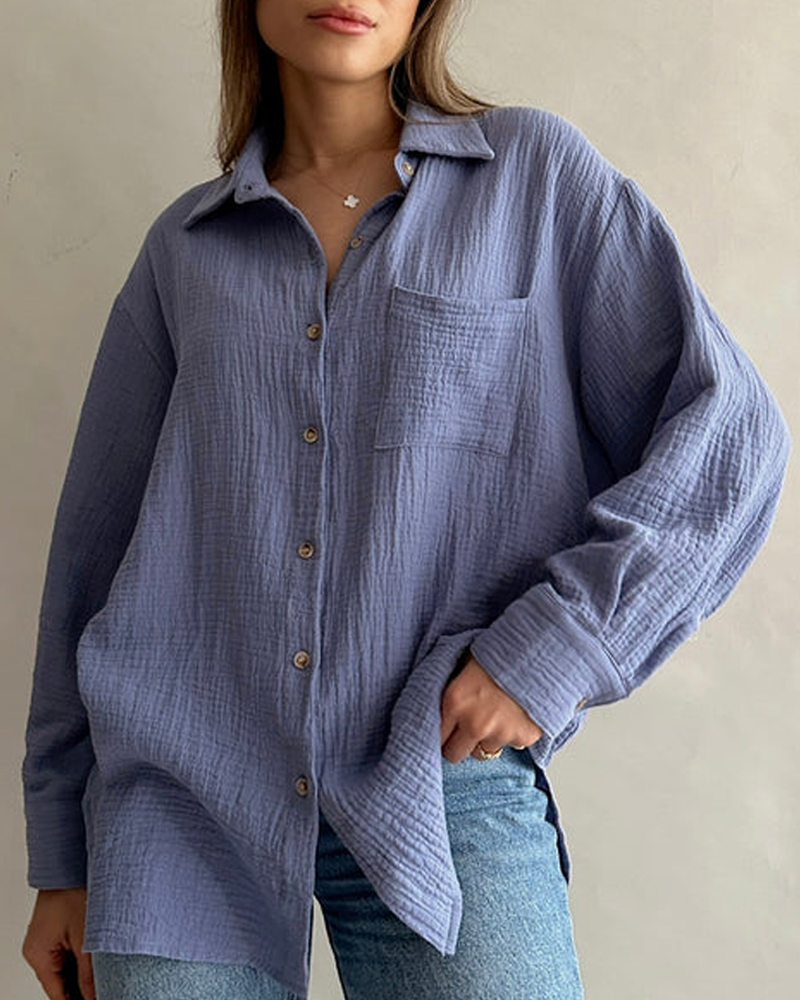 48% OFF🔥 Women's Lapel Single Breasted Solid Color Shirt (Buy 2 free shipping)