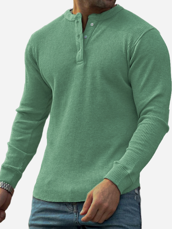 Men's Textured Waffle Trend Long Sleeve Lapel Henley